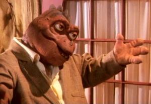 Unisaurs are the innumerable supporting characters on Dinosaurs. Rather like the Anything Muppets and Whatnots, the Unisaurs are recycled, with variations in costume and occasional cosmetic alteration, for the many guest characters, background extras, and minor recurring characters. These characters can be divided between full body puppets, of which there were only five or six, and hand puppets, of which there were a dozen or more. Unisaurs were created and used to ease the production staff's need to populate a world of dinosaurs week after week. Changing costumes and occasionally features on an existing dinosaur was a lot faster (and cheaper) than creating individual and unique dinosaurs for every individual role. Without the Unisaur, Dinosaurs would not have been able to keep the world populated and the show going.