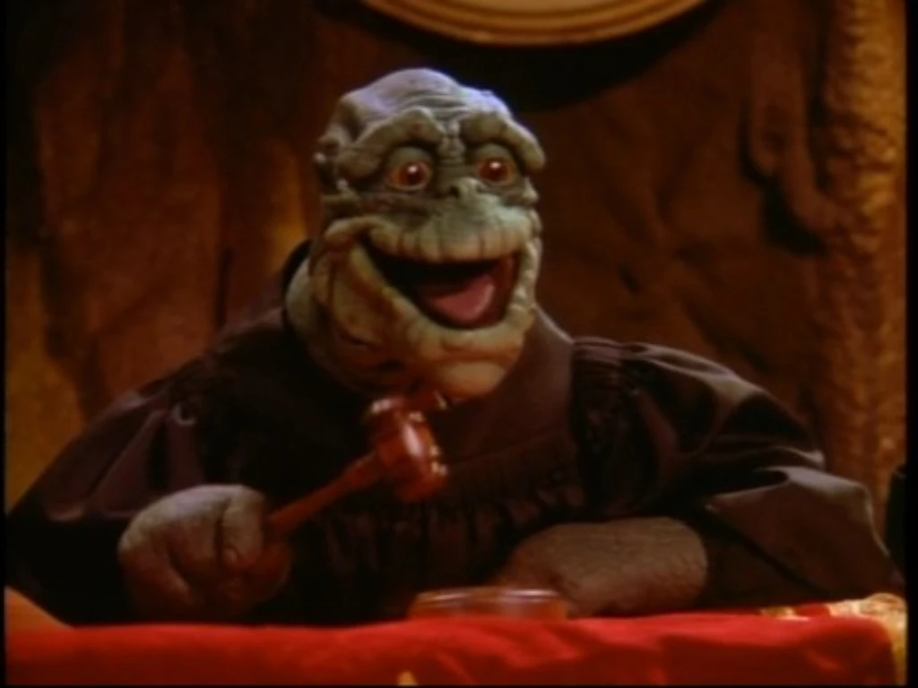 The hand puppet dinosuar characters were used most often as television personalities, elders or officials, audience extras, and other characters who could legitimately be shown only from the waist up. There were at least a dozen or so of this type, in addition to unique characters such as Howard Handupme, but some of the more notable variations include the following: