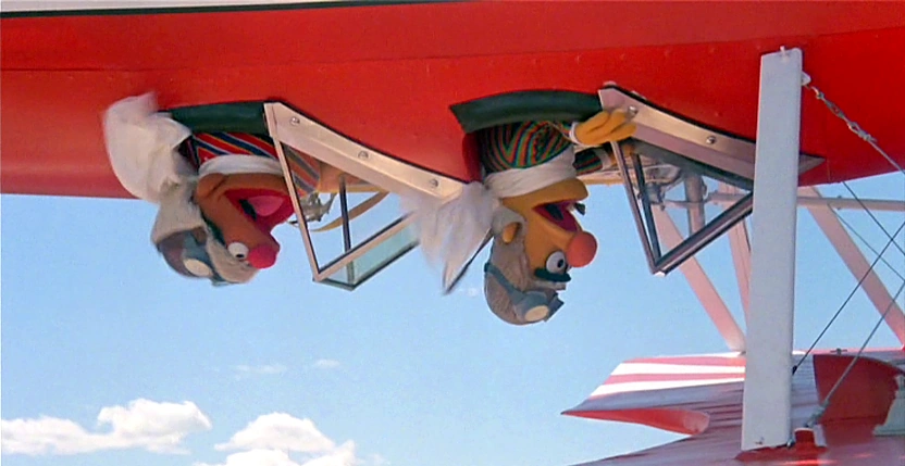- Jim Henson and Frank Oz performed the puppets in an upside-down biplane 18 feet from the ground when doing this scene.[1]