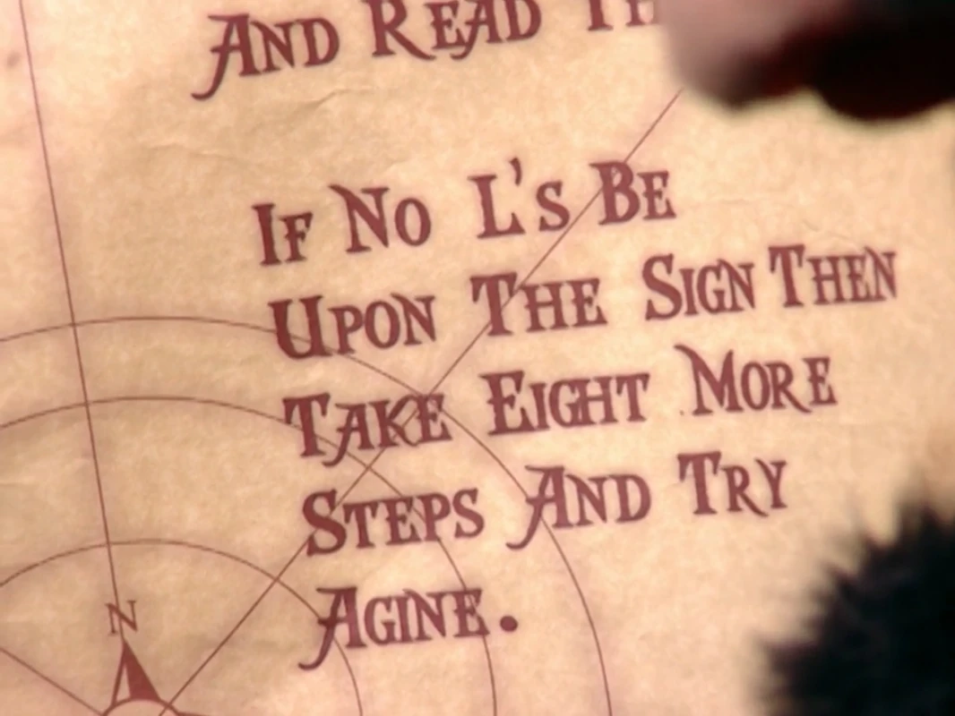 - In Episode 4135 of Sesame Street, the Bookaneers map reads "If No L's Be Upon The Sign / Then Take Eight More Steps And Try Agine." The First Mate calls the rhyme a stretch, to which the Salty Dog pirate responds, "I just reads them. I don't writes them."
