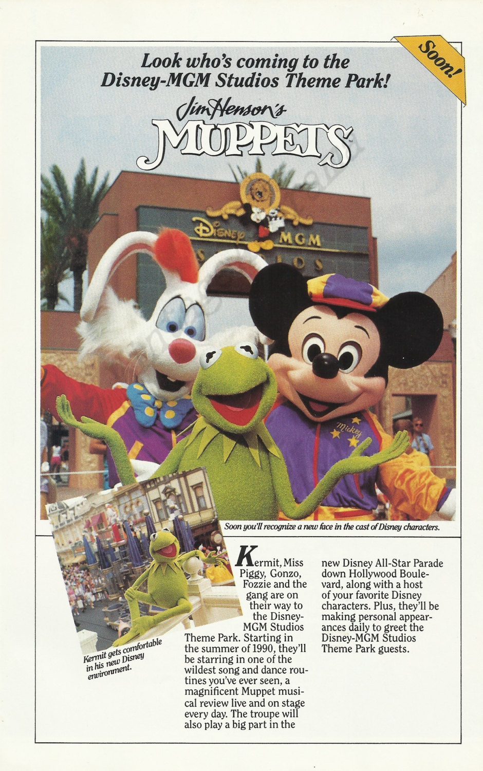 After The Walt Disney Company had announced a deal to buy The Jim Henson Company in 1989, the two companies produced The Muppets at Walt Disney World, a primetime special that aired on The Magical World of Disney in May 1990, in which Kermit the Frog and his friends explored the resort.