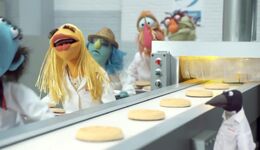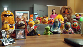 In November 2015, the Muppets appeared in a two-minute promo spot, advertising the company's new Giant Crumpets. In the ad, Kermit the Frog approaches company chairman Jonathan Warburton to propose a new ad campaign for the Giant Crumpet - "The Giant Crumpet Show." From a factory, the entire Muppet gang sings a variant of "The Muppet Show Theme," boasting about the new Giant Crumpets. In the end, Warburton approves of the idea, though Statler and Waldorf typically thumb it down. Kirk Thatcher and Declan Lowney directed the spot.