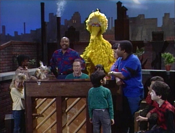 1987 | The cast sing on the roof of 123 Sesame Street as the finale of the direct-to-video Sing Along, scenes from which later formed the street story in Episode 2443. |