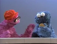 In 2000, this song was remade with Lulu and Cookie Monster, set in the community garden. This new version boasts an entirely new arrangement and melody (composed by Stephen Lawrence),[1] and instead of devouring something else, when Cookie Monster gives his last cookie up, he remarks, "Me feel strangely okay about this." (First: Episode 3885)
