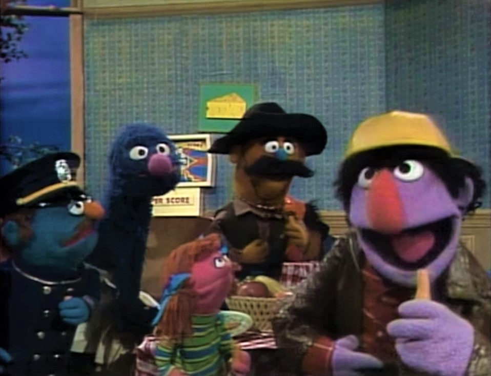 In a commercial send-up, Biff walks into a dull restaurant (where a sleeping Sully and Sally Smith are also dining, among other Anything Muppets) that livens up when Grover, the restaurant waiter, serves them carrots.
