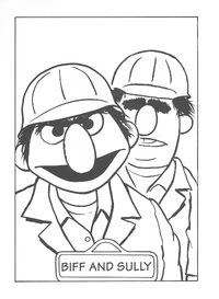 Recycled images from Mathieu's pages are of: Ernie (1989 version), Bert, the Ernie/Bert drum page, Big Bird (1989 version), Little Bird, Big Bird and Little Bird, Snuffleupagus, Alice, Grover, Grover in his plane, Mumford, Mumford's levitation act with Grover, Elmo, the Twiddlebugs, Ernie watching over the Twiddlebugs, Forgetful Jones, Rodeo Rosie, Chris and the Alphabeats, Cookie and Ernie and Bert's group page, Biff and Sully, Maria and Luis's wedding picture, Herry Monster, Monsters, More Monsters, The Martians, Prairie Dawn, Betty Lou, Anything Muppets, the "Now Make Your Own Muppets" page (with the text written in a new font), Bob (1989 version), Linda, Sam, Telly, the Count, the Countess, the Count counting five bats, Gina and Elmo's ice cream soda, Ernestine, Ernie feeding Ernestine, Irvine, Irvine in her crib, Ruby, Meryl Sheep, the Two-Headed Monster, Farmer Grover, Barkley, Big Bird and Barkley in the park, Honkers, Placido Flamingo, Hoots the Owl, Grover's Mommy, Oscar the Grouch, Oscar and the Mudman, Oscar's Pet Worm Slimey, Dingers, Cookie Monster, Prince Charming and Lance, Gladys the Cow, the three group pages from 1977, and Ernie's "Draw Your Favorite Muppet" page.