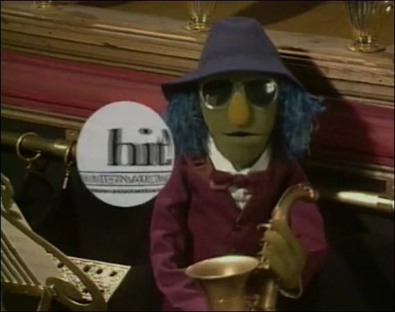 The 1980s ending, featuring Zoot playing the note, then looking startled as the Henson International Television logo ("hit!"), appearing on a bubble, flew out of the sax. There were several different versions of this ending, with season 1 and 2 episodes using only one version of Zoot without his hat. However, different shots of Zoot with his hat were filmed for seasons 3-5, with one being used for TV broadcasts and two only appearing on the show's DVD releases. This ending was used on reruns of The Muppet Show on BBC from 1986 to 1987, as well as broadcasts in Russia. |